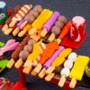 “Giả vờ làm nhiều món ăn ” Bộ đồ chơi nhà bếp nướng đi kèm với một số đồ chơi, Trẻ em có thể giả vờ làm xiên cánh gà nướng, Ngoài ra còn có hai kẹp để trẻ kẹp thức ăn trong trò chơi. Tất cả đồ chơi thực phẩm đều có trong Thiết kế thực tế, phát triển các kỹ năng vận động của trẻ trong trò chơi nhà bếp vui vẻ.